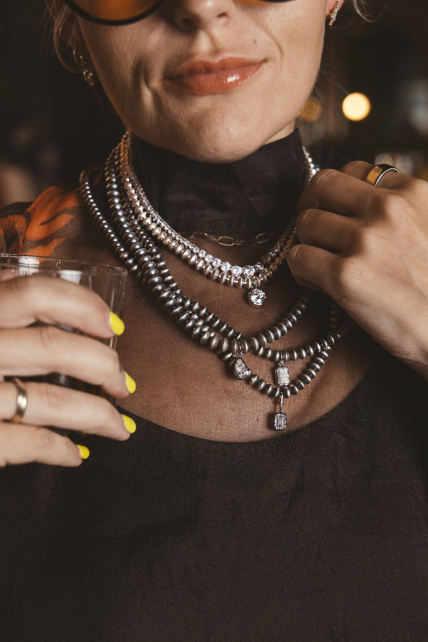 Introducing theContemporary Cowgirl Collection, a distinctive collaboration between Devereaux Gold and1806 & Company. This exceptional collection redefines traditional Western and Native American jewelry by blending the unique charm of turquoise jewelry and handcrafted Navajo pearls with contemporary diamond settings and accents, resulting in stunning pieces that resonate with today's fashion-forward cowgirl.