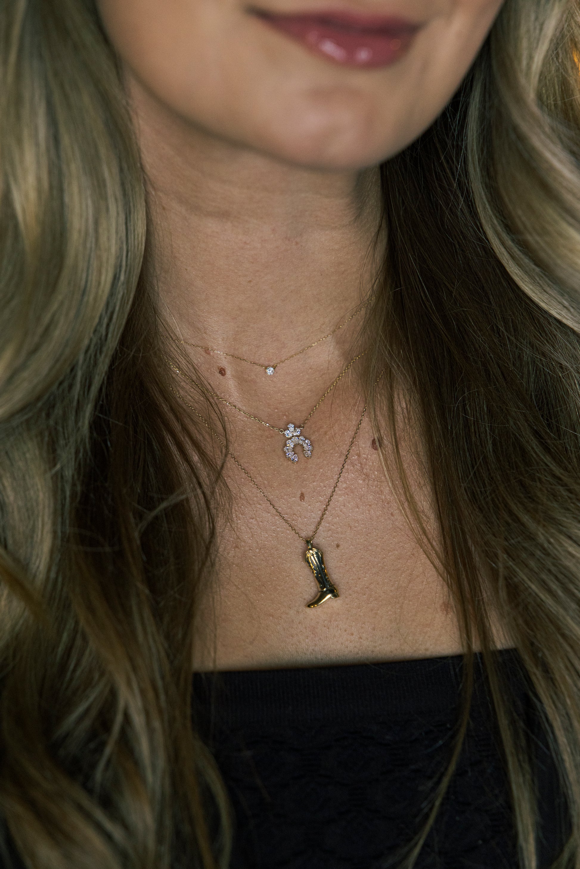 Saddle up in style with our Cowgirl Boot Pendant! This pendant features a diamond cut curb chain, adding a touch of sparkle to your cowgirl look. Made with your choice of high-quality solid gold or silver this pendant is perfect for adding a western flair to any outfit. Yee-haw!