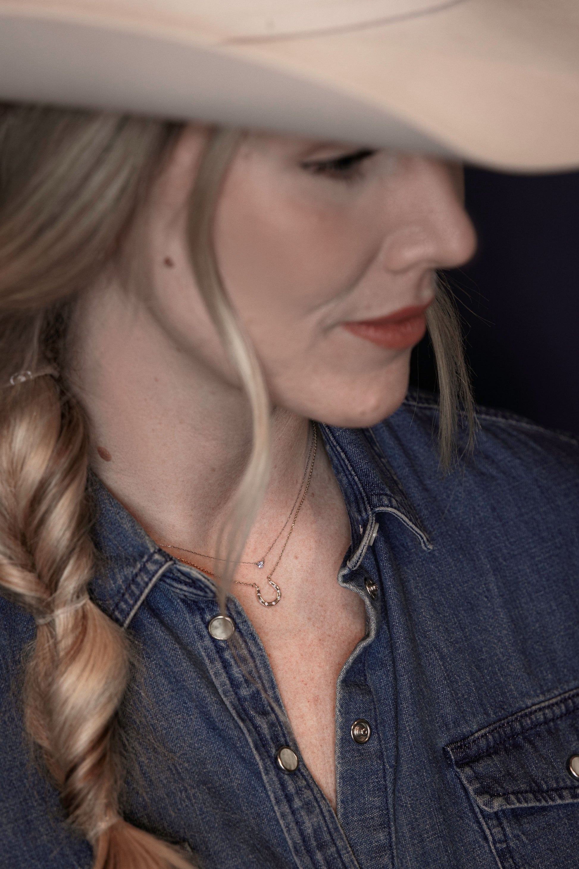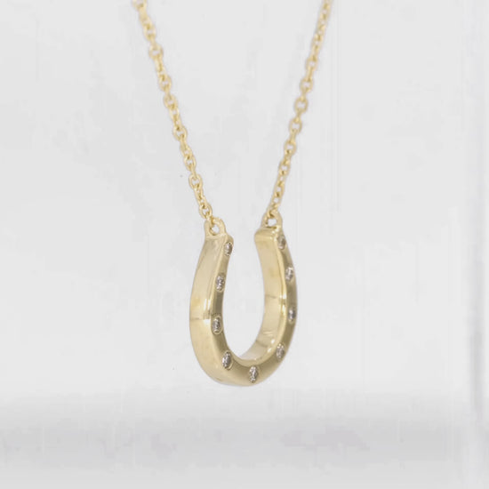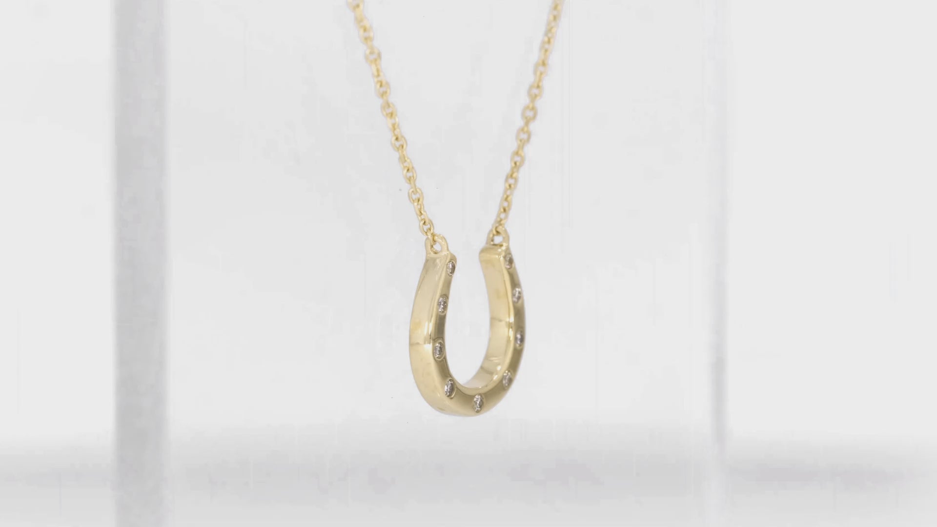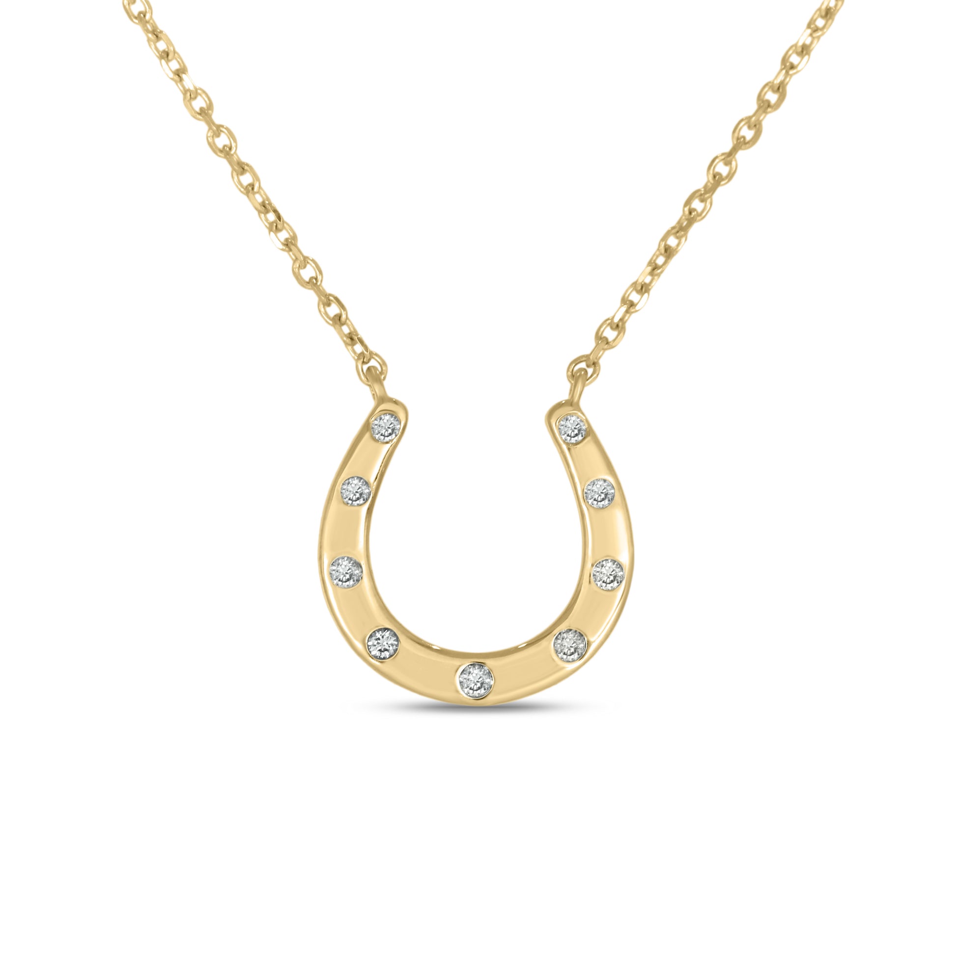 Add a sparkle of luck to your look with this Flush Set Diamond Accent Horseshoe Necklace in 14K Gold. Featuring shimmering diamonds nestled flush in a classic horseshoe design, it brings a playful touch of charm and elegance. Perfect for layering or wearing solo, this necklace turns everyday style into a dazzling statement of good fortune.